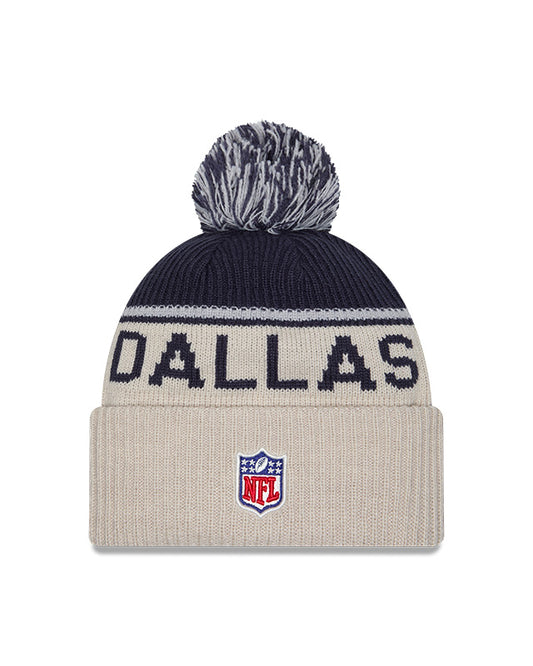 Dallas Cowboys 2024 New Era NFL Sideline Historic Cuffed Pom Knit - Cream